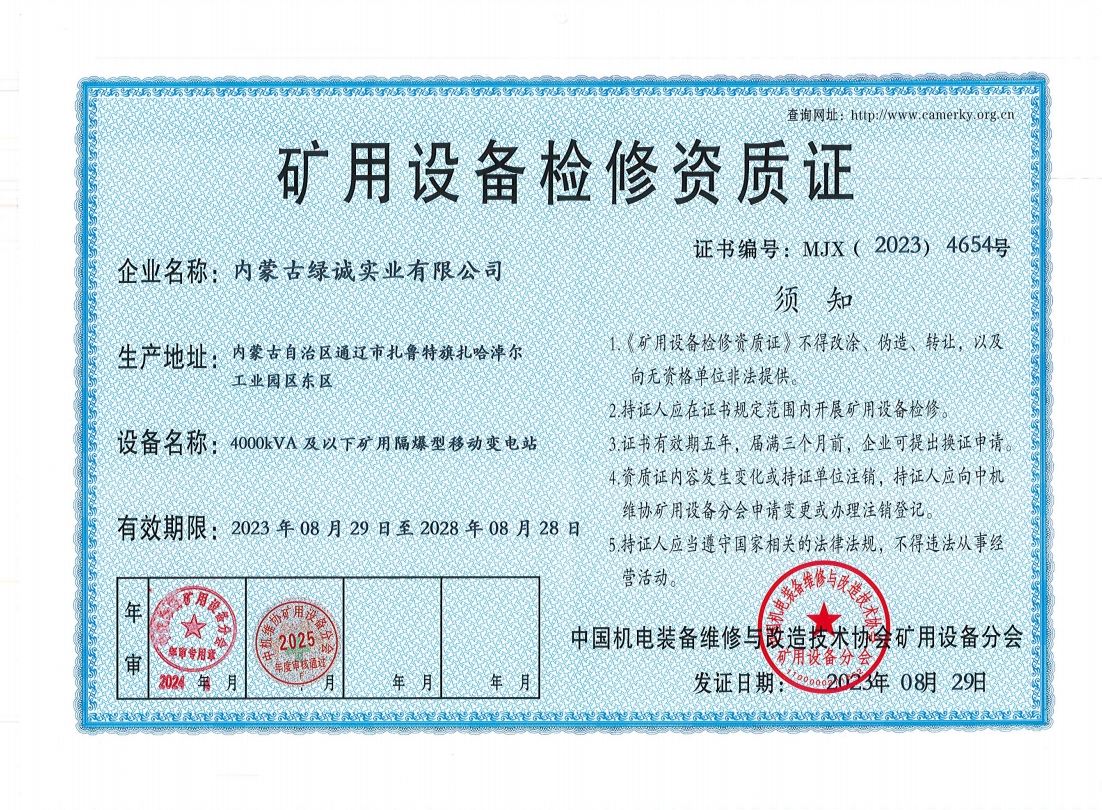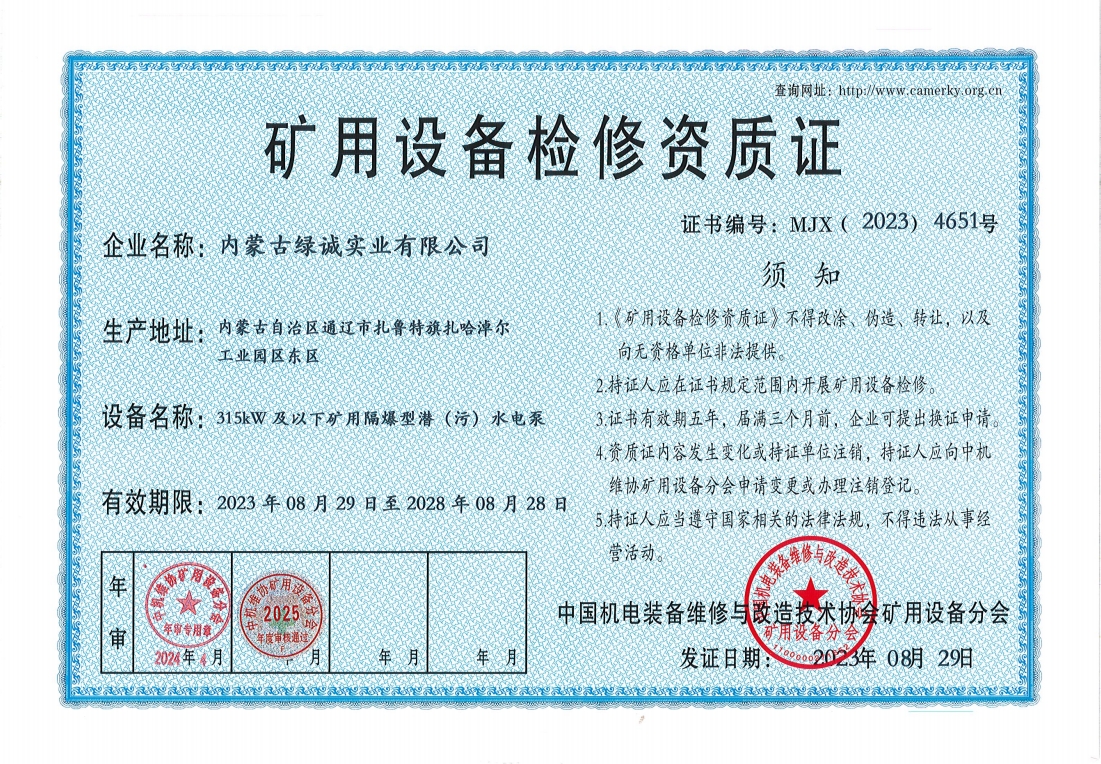 2018年我公司通過(guò)中國(guó)機(jī)電裝備維修與改造技術(shù)協(xié)會(huì)礦用設(shè)備分會(huì)審核并取得了9項(xiàng)礦用設(shè)備檢修資質(zhì)證書。公司本著“誠(chéng)信為本 質(zhì)量為先 全心全意為客戶 ”的服務(wù)理念,圓滿完成各個(gè)廠礦的機(jī)械維修及配套服務(wù),期待與您共同合作。